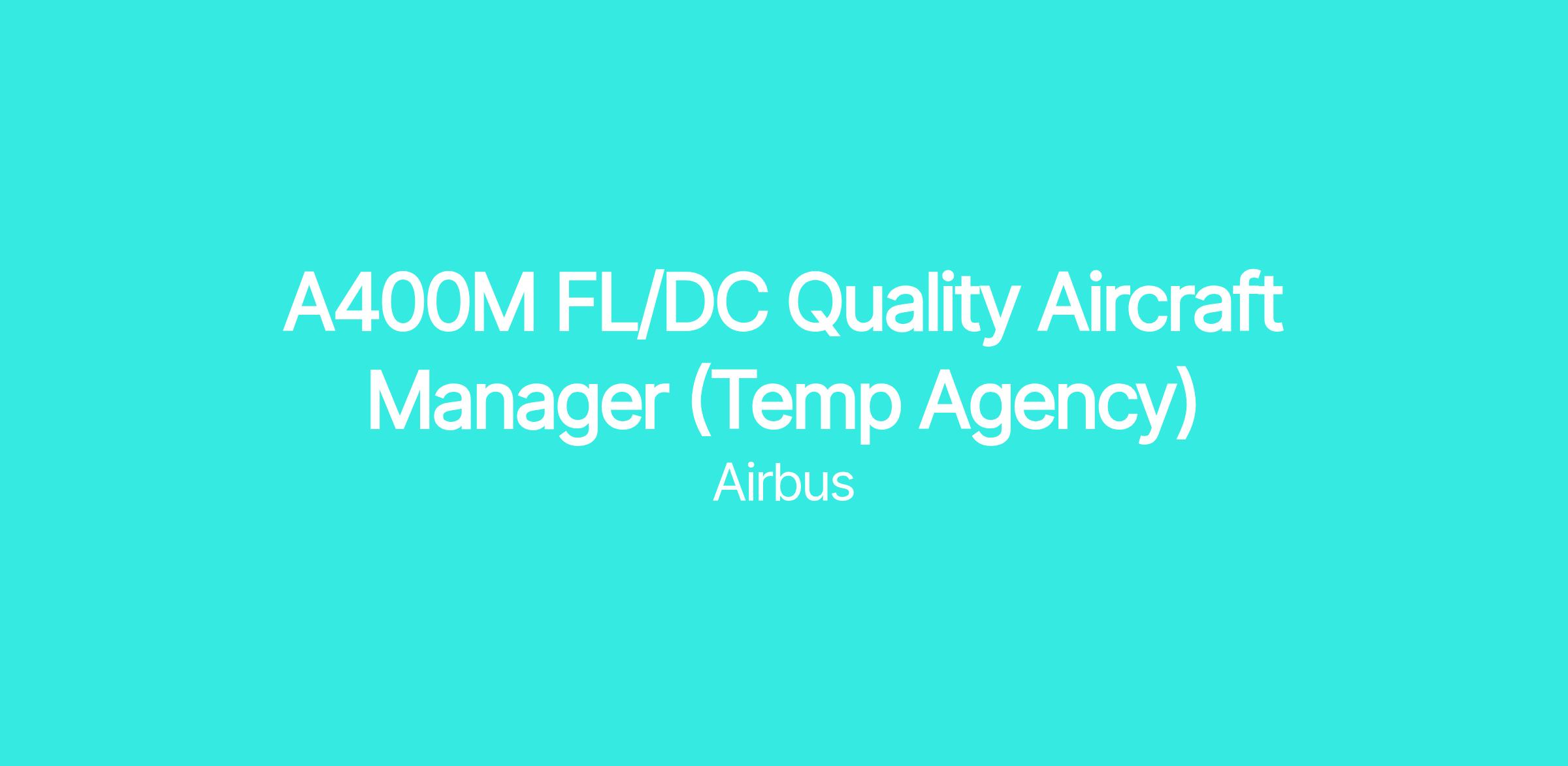 An opportunity for A400M FL/DC Quality Aircraft Manager has arisen in San Pablo (Sevilla)
