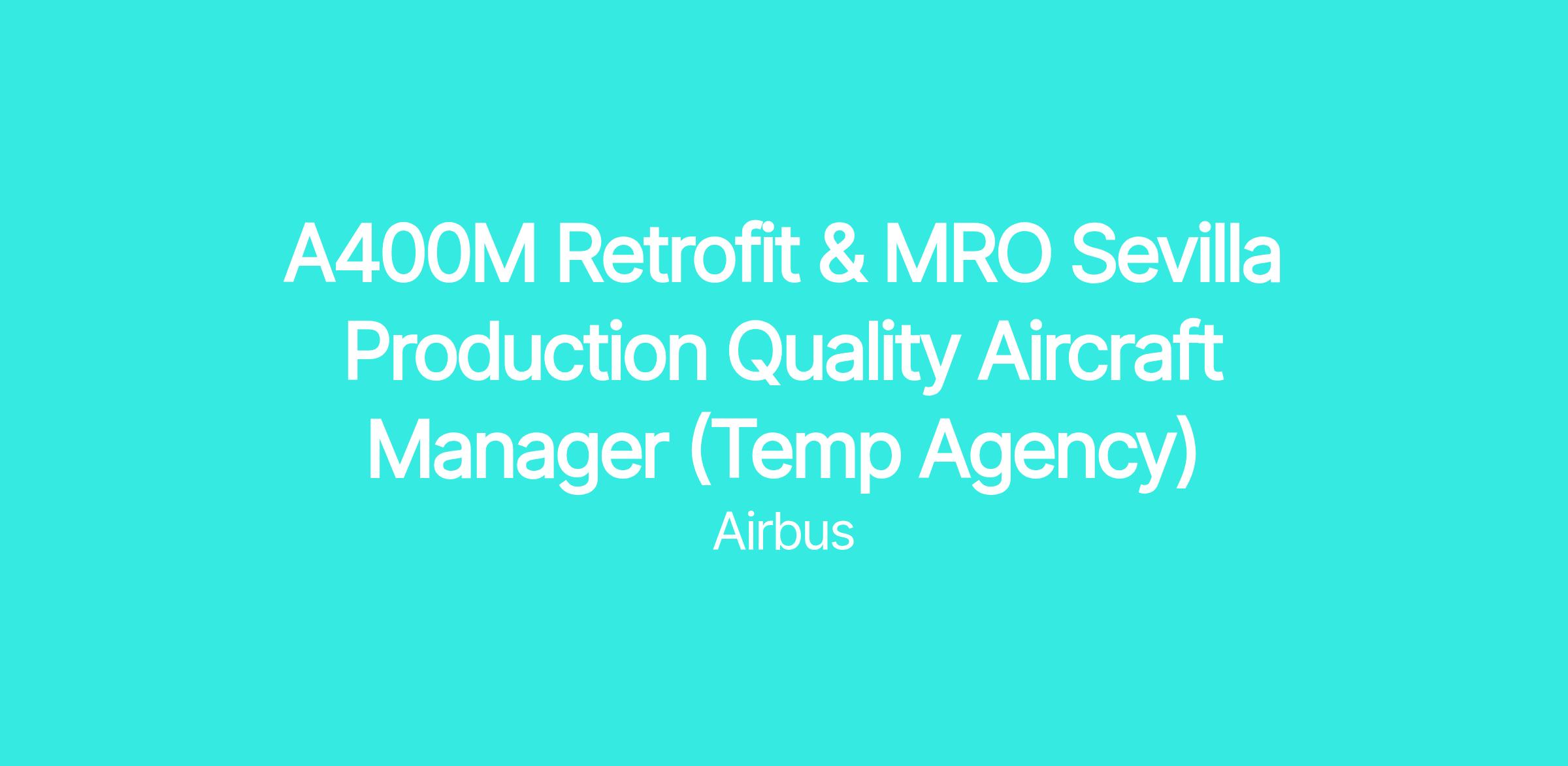 An opportunity within A400M Retrofit & MRO Production Quality team has arisen in Airbus DS in Seville (San Pablo), you will reinforce the TAOQSA3 department.