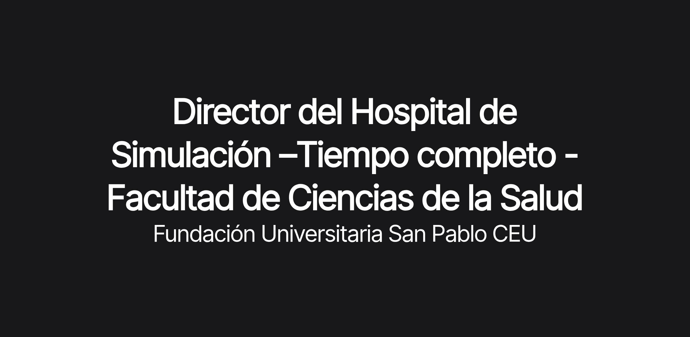 La Universidad CEU Fernando III impulsa el desarrollo de su Hospital de Simulación como eje estratégico para la formación en Ciencias de la Salud, y busca incorporar un médico con perfil de gestión que lidere este proyecto con dedicación a tiempo completo. .