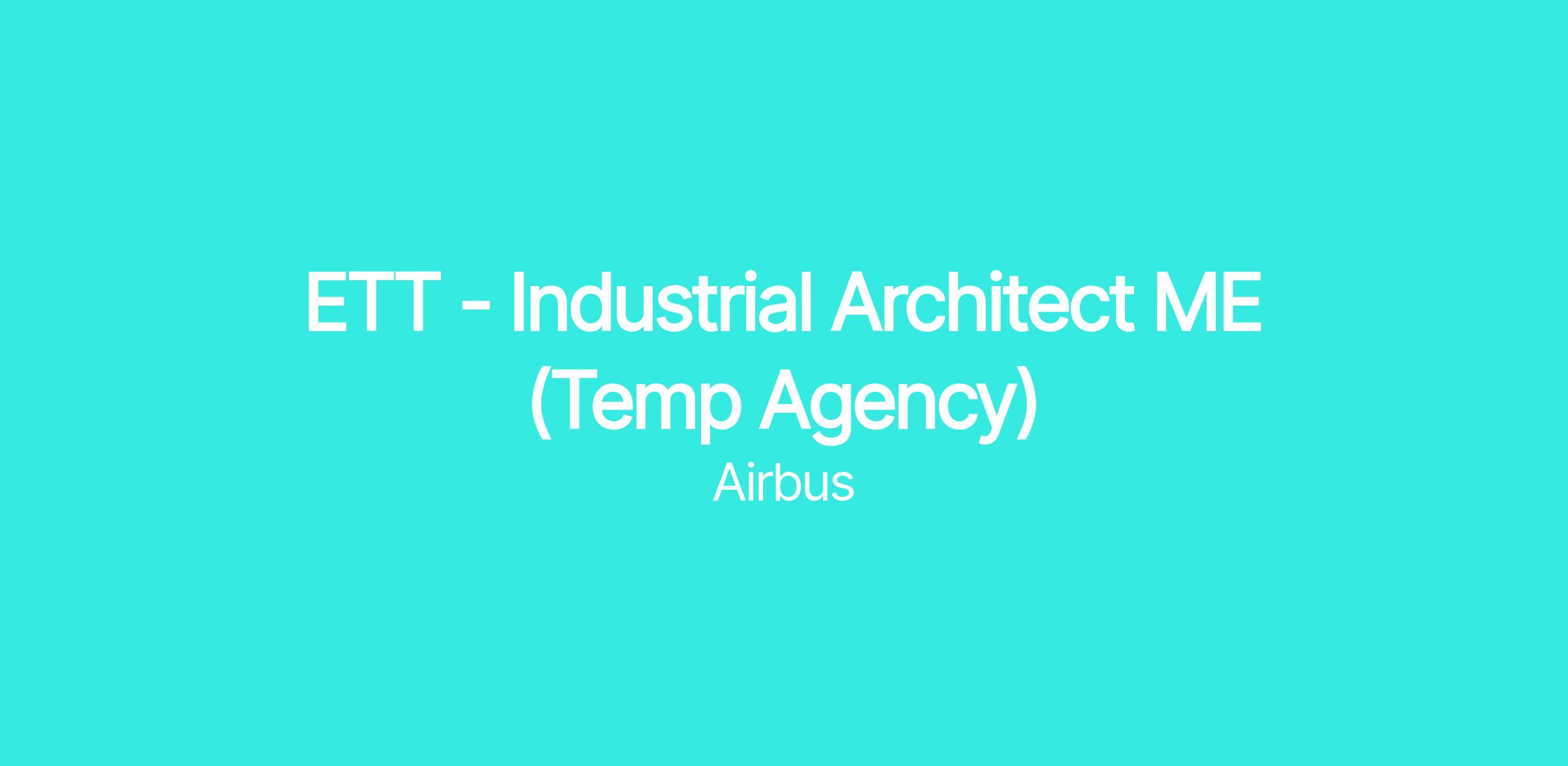An opportunity for a Industrial Architect has arisen within Airbus Defence and Space, San Pablo (Sevilla).